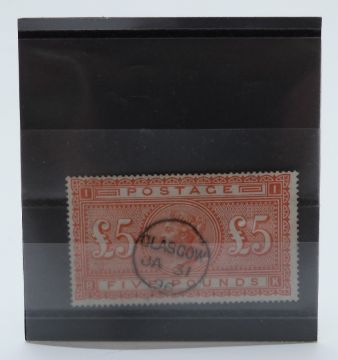 GB 1867 SG137 £5 orange, white paper, fine used with Glasgow circular date stamp