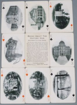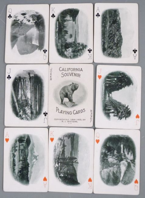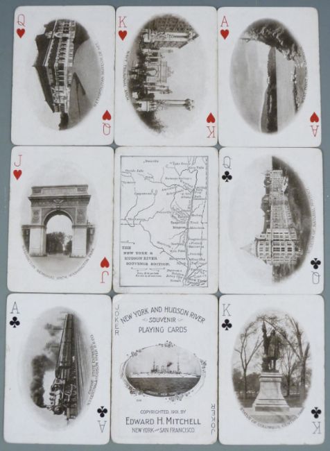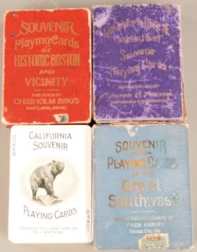 Four packs of American souvenir playing cards comprising California, Great Southwest, Boston and New York City & Hudson River