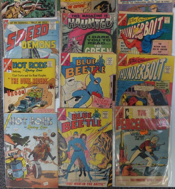 Twenty-five Charlton and CDC horror, action and similar comics comprising Captain Atom, The Peacemaker, Thunderbolt, Blue Beetle, This Magazine Is Haunted, Masked Raider, Ramar, Speed Demons, Hot Rods, The Green Planet, Foreign Intrigues and Robin Hood.