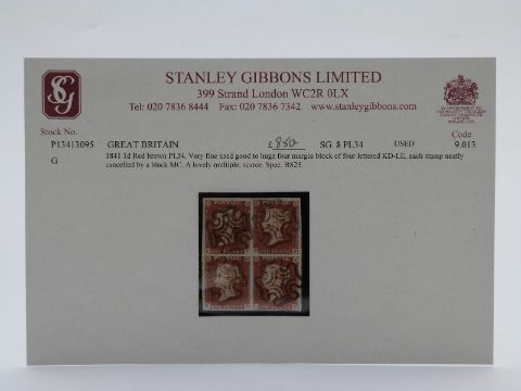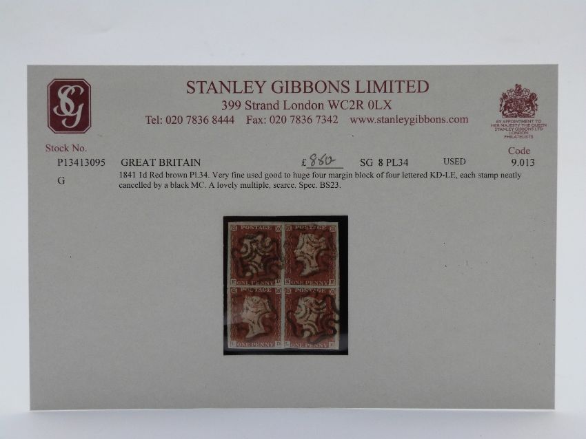 Great Britain 1841, 1d red brown plate 34, used block of 4 with black Maltese cross cancellation, SG8 PC34