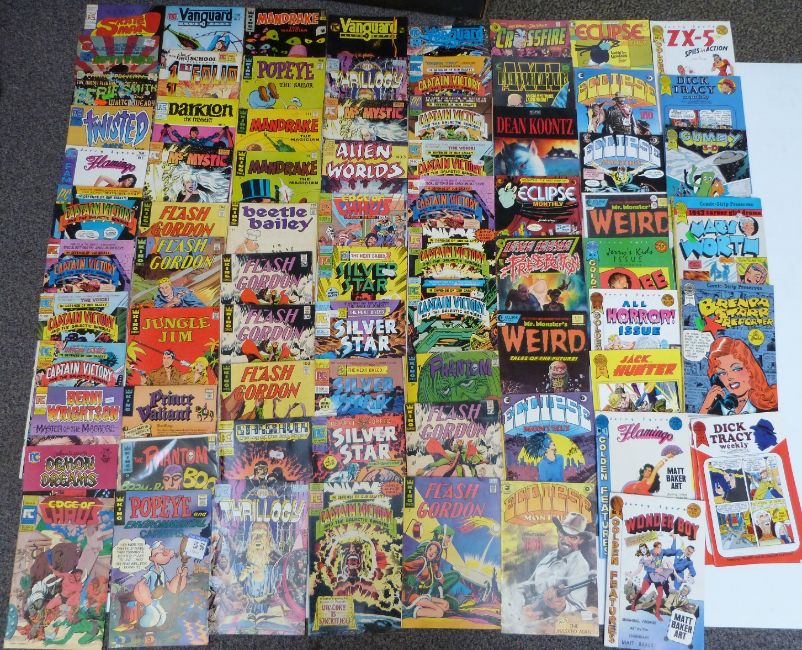 Seventy-eight PC, KIng, Eclipse, Blackthorne and other comics including, Wonder Boy, Jack Hunter, Dean Koontz, Flash Gordon, The Phantom, Captain Victory, Silver Star, Flash Gordon, Popeye, Jungle Jim, Captain Victory etc