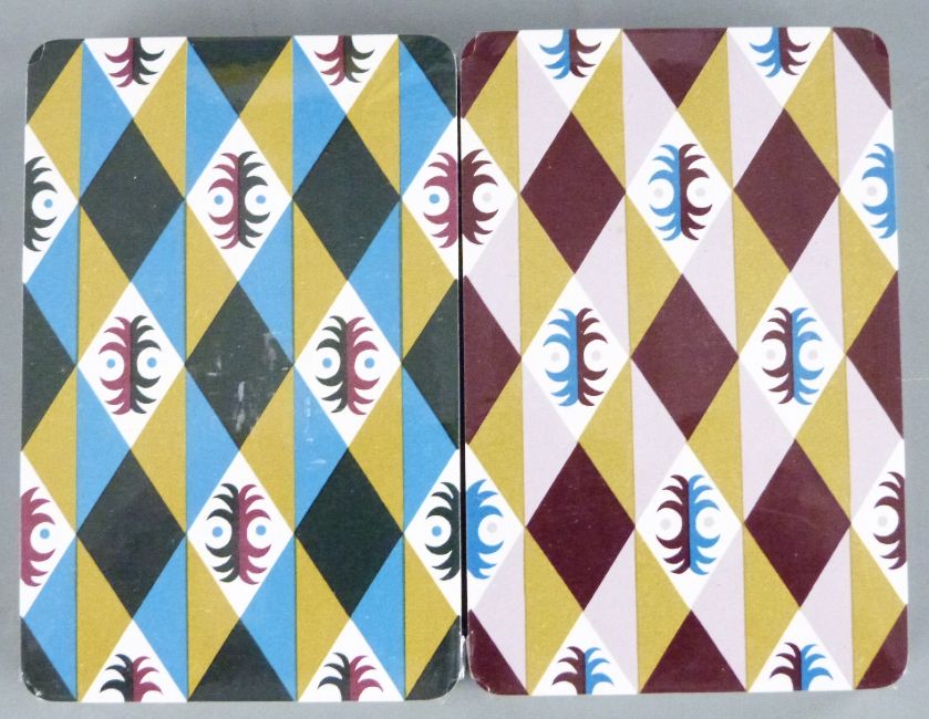De La Rue & Company, England ‘Jean Picart le Doux’ playing cards issued for the 125th anniversary of De La Rue, designed by Jean Picart le Doux, the French tapestry designer. Double pack, still sealed, in black and white plastic box in outer card box, 1957