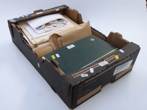Four stockbooks of mint Great Britain QEII stamps and booklets, high redeemable face value. Also Royal Mail Special Stamps book 2006, loose GB album sheets and loose used stamps in envelopes