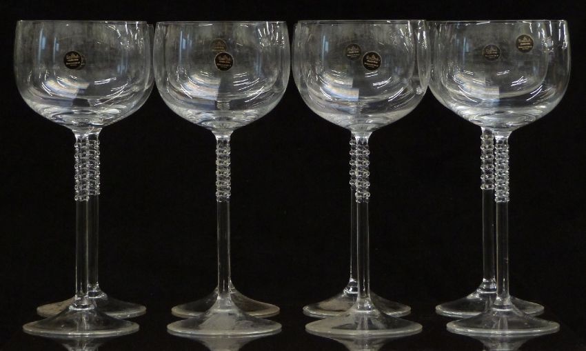 A set of eight Rosenthal Studio-Line red wine glasses with bobbled stems, 22cm tall