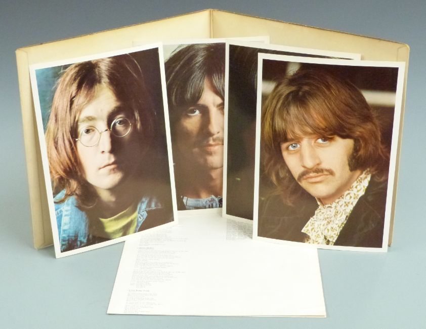 The Beatles - The Beatles (White Album) PMC7067, number 0293618, top opener complete with black inners, poster and photographs, records appear Good and cover better.  Also later issues of Sgt Pepper, Abbey Road and Let It Be, all appear Ex