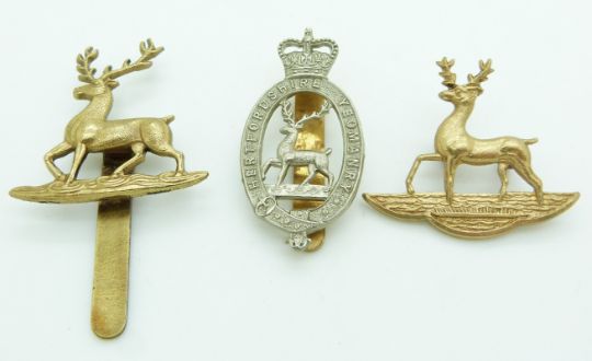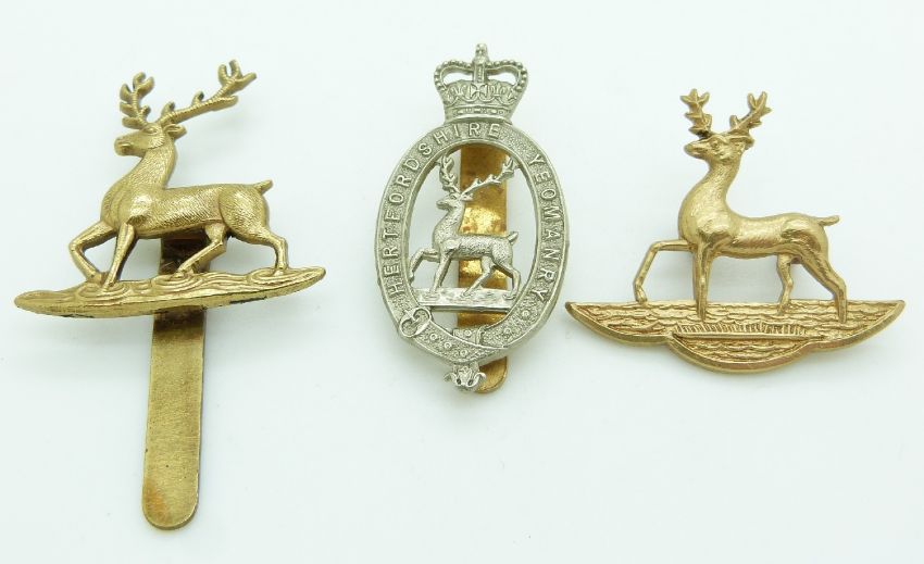 Three British Army Hertfordshire Yeomanry metal badges, one by Gaunt London