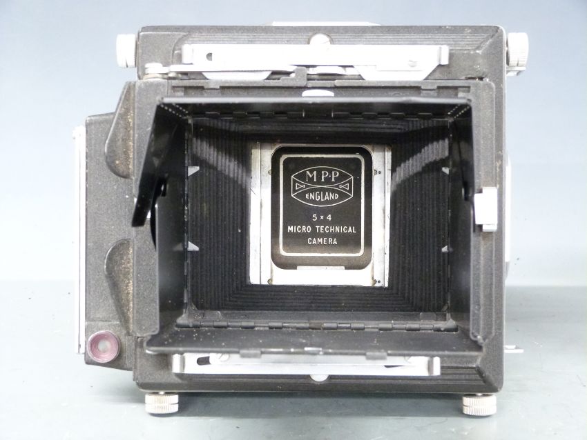 MPP 5x4 micro technical camera together with an early 20thC mahogany plate camera and a quantity of film holders etc