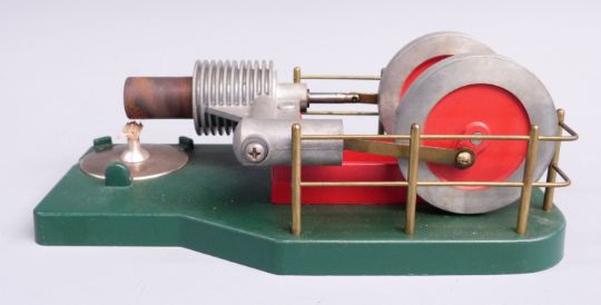 Solar Engines of Phoenix Arizona live steam stationary horizontal two cylinder engine, 19cm long.