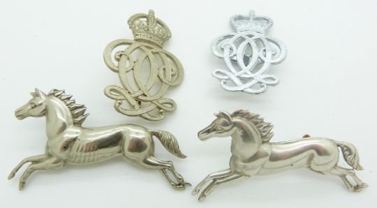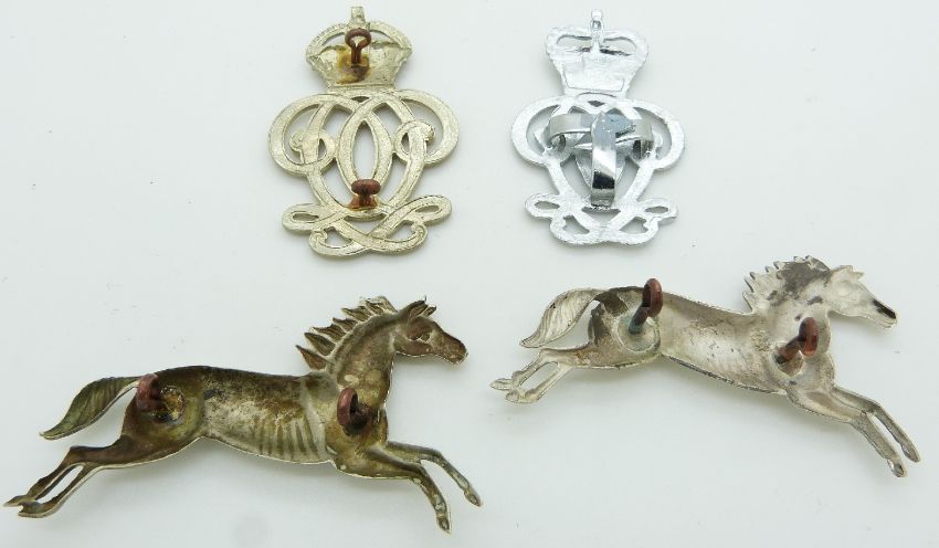 Four British Army Cavalry/Yeomanry metal arm badges