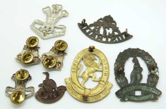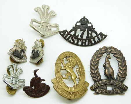 Eight Australian Army Light Horse metal badges for the 4th, 6th, 7th, 9th, 40th and Prince of Wales Regiments