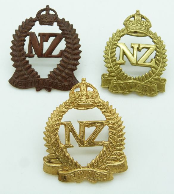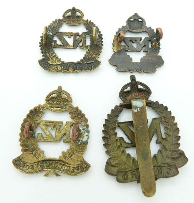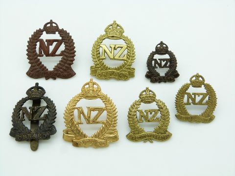Seven New Zealand Army WWI New Zealand Expeditionary Force metal hat and collar badges