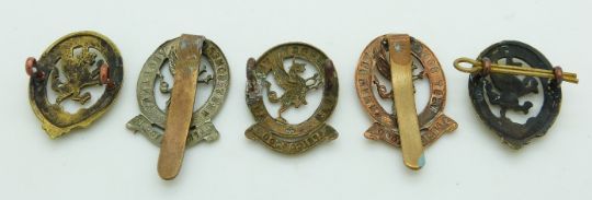 Four British Army West Somerset Imperial Yeomanry metal cap badges