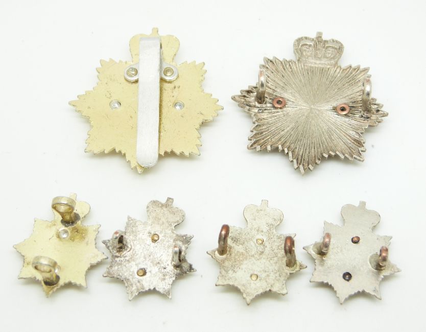 Five British Commonwealth Jamaica Defence Force Regiment enamelled and anodised cap and collar badges