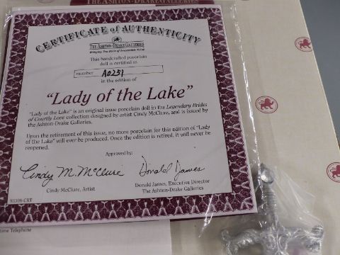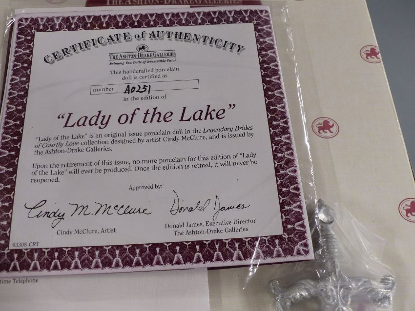 Two Ashton-Drake dolls Lady of the Lake and Eternal Love, both in original boxes with certificates and outer boxes.