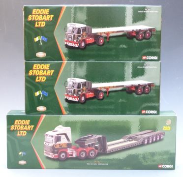 Three Corgi Eddie Stobart Ltd 1:50 scale limited edition diecast model lorries CC12203 and two CC12502, all in original boxes.