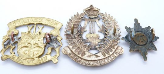 Three New Zealand Army WWI 19th Reinforcements badges together with a bandsman's example plus one other