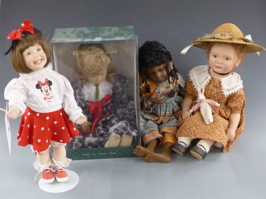 Four dolls comprising Ashton-Drake Disney Titus Tomescu Walt Disney World Girl, Mondays child, D'Anton Jos and one other, largest 53cm tall.