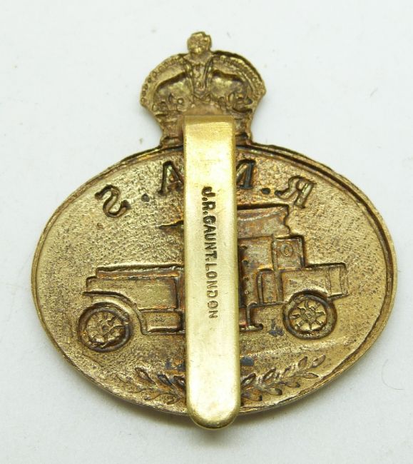 Royal Navy Royal Naval Air Service 'Armoured Car' officer's metal badge, J.R Gaunt London makers, with slider