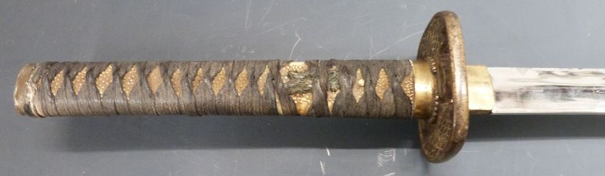 Japanese Katana sword with engraved blade and gilt metal fittings, overall length 100cm