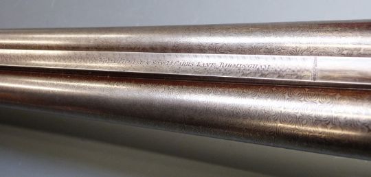 William Powell & Son 12 bore side by side ejector shotgun with named and engraved locks, fine scrolling engraving to the trigger guard, underside, top plate and thumb lever, chequered grip and forend, carved teardrop at the wrist, vacant cartouche to the underside of the high grade stock, double trigger and 30 inch Damascus barrels engraved 'William Powell & Son 13 Carrs Lane Birmingham', overall length 118.5cm, length of pull 37.5cm, serial number 8891, in original fitted leather case with labels, tools, cleaning kit, G & JW Hawksley oil bottle, related Shooting Times Article etc. PLEASE NOTE THAT A VALID RELEVANT FIREARMS/SHOTGUN CERTIFICATE IS REQUIRED TO HANDLE/PURCHASE THIS ITEM.