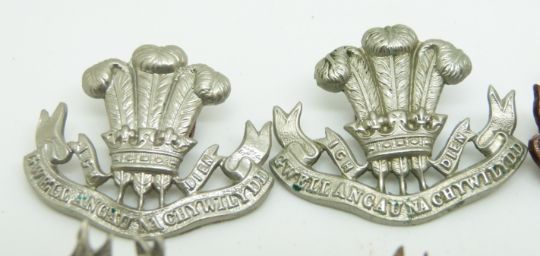 Eleven Welsh Regiment metal collar badges including two pairs of bronze officer's service dress examples