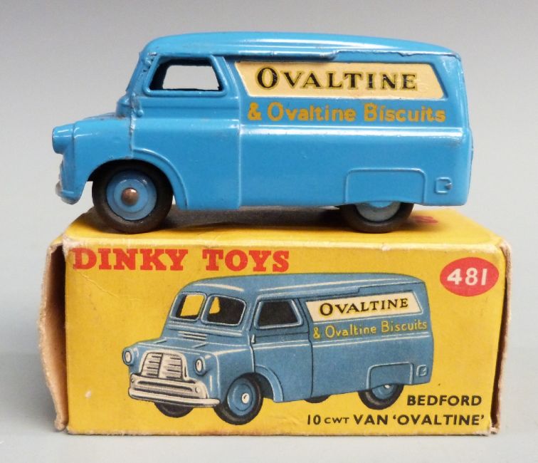 Dinky Toys diecast model Bedford 10CWT van 'Ovaltine' with blue body and hubs and Ovaltine Biscuits decals, 481, in original box.