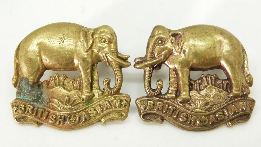 British Army British Asian King's Colonials Regiment pair of collar badges