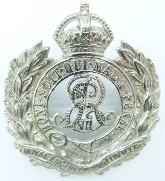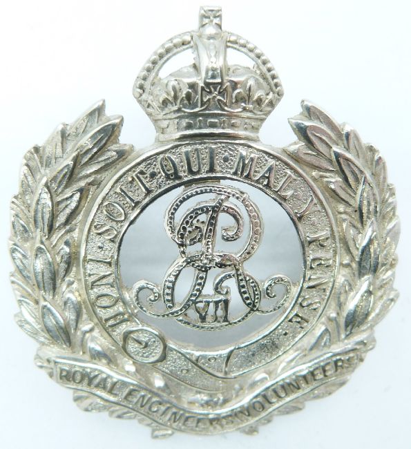 British Army Royal Engineers Volunteers officer's white metal cap badge