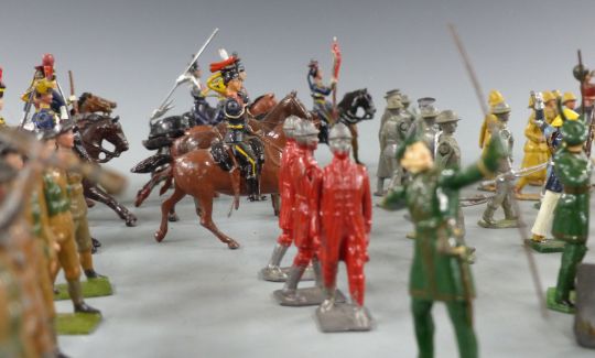 Seventy-four Britains and similar lead model soldiers including stretcher carriers, archers, cavalry, knights etc.