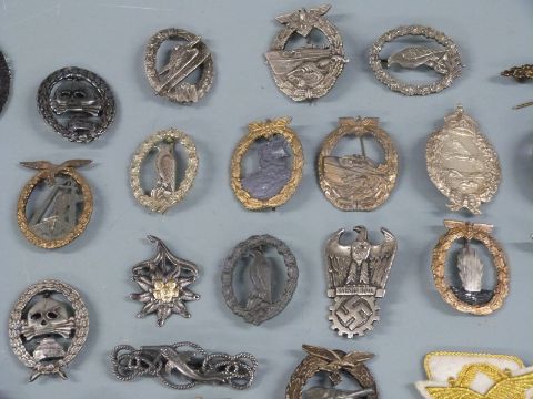 Quantity replica Nazi German insignia and medals including Luftwaffe, Kriegsmarine etc