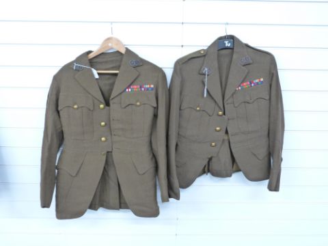 Two British Army WWII Argyll & Sutherland Highlanders sporrans and tunics for Lt Colonel E Remington Hobbs with portrait, in vintage suitcase