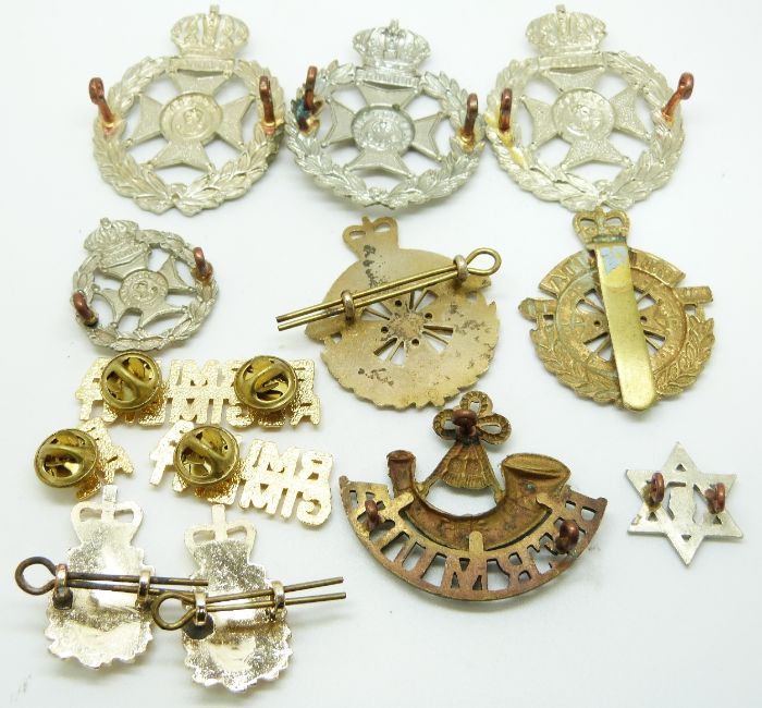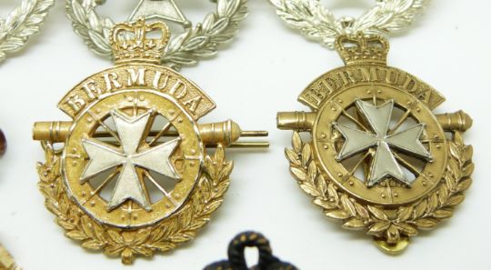 Ten British Overseas Territory Bermuda Rifles and Artillery metal and anodised badges etc together with a pair of shoulder titles