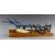 A miniature metal apprentice-made plough with working features, on wooden base, 27cm long.