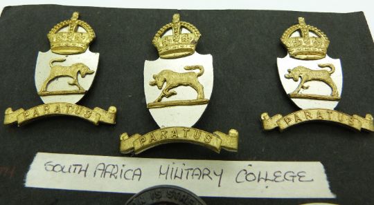 Five South Africa Military College metal badges