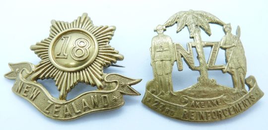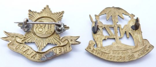 Two New Zealand Army WWI 18th/23rd Reinforcements metal hat badges