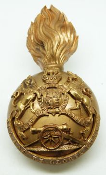 British Army Royal Artillery officer's Victorian gilt busby grenade plume holder