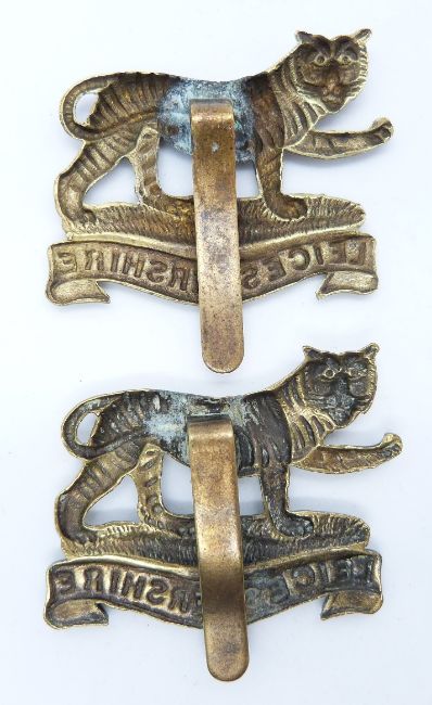 Two British Army Leicestershire Regiment 4th/5th/6th Battalion metal cap badges