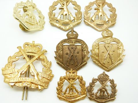 Eleven Australian Army Royal Infantry Corps and Royal Regiment metal hat and collar badges