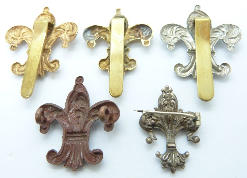 Five British Army Manchester Regiment 7th Battalion metal badges including a bronze example