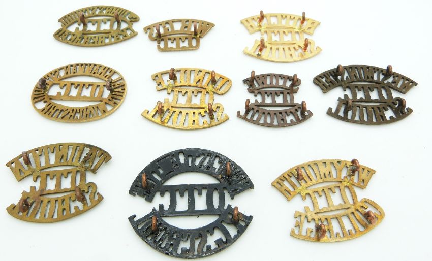 Ten schools/college Westminster, Rutlish, Stowe, Oundle, Taunton etc metal shoulder titles