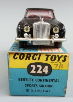 Corgi Toys diecast model Bentley Continental Sports Saloon By H J Mulliner with two-tone black and grey body and red interior, 224, in original box.