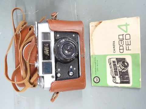 Quantity of collectable vintage cameras to include FED4, Finetta, Brownie folding camera, Polaroid 1000, Box Brownie, Soligor cine camera and Dacora