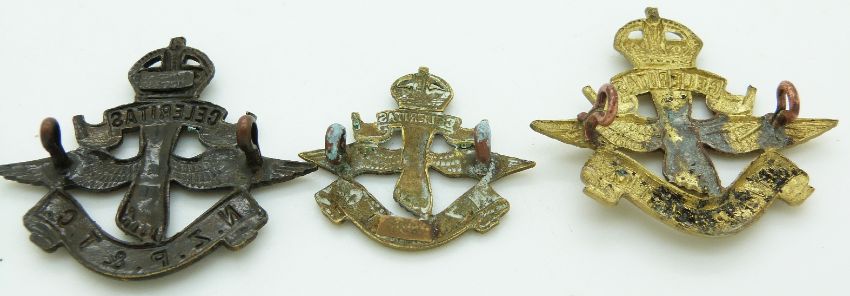 New Zealand Territorial Force Post and Telegraph Corps metal hat and collar badges, three with Gaunt makers to reverse