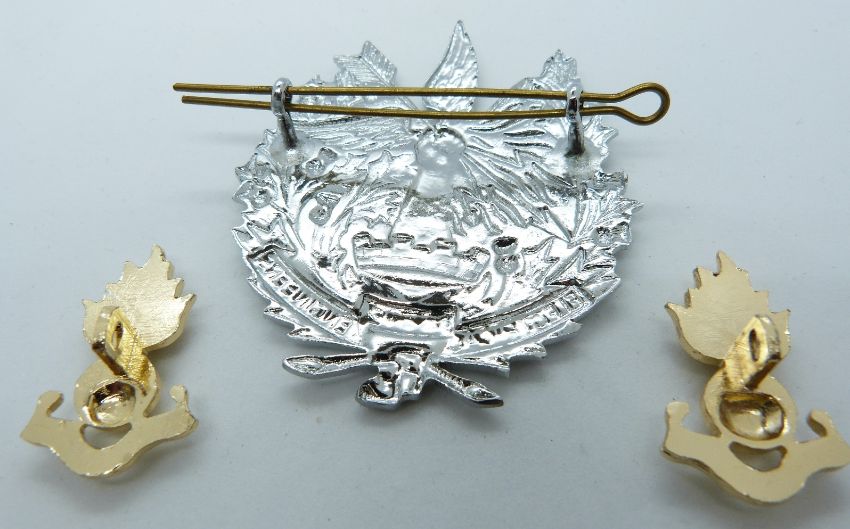 British Army Tyne Electrical Engineers Pipers metal badge and anodised collar badges
