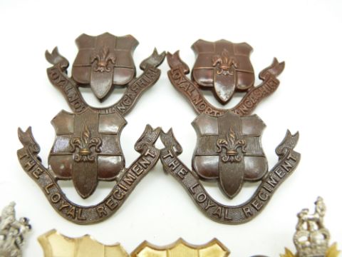 Ten British Army Loyal Regiment (North Lancashire) collar badges in four pairs plus two including two pairs of Officers Service Dress examples, one pair stamped J.R.Gaunt