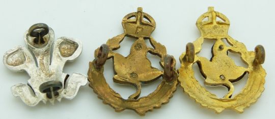 British Army Worcestershire Hussars gilt collar badges together with a Cheshire Yeomanry example, one by Gaunt