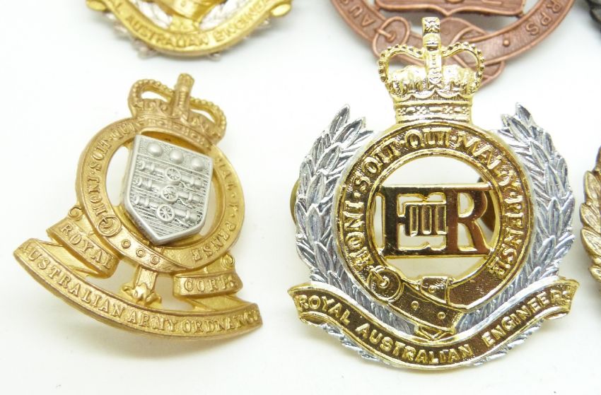 Thirteen Australian Army Royal Australian Engineers and Australian Army Ordnance Corps metal and anodised badges