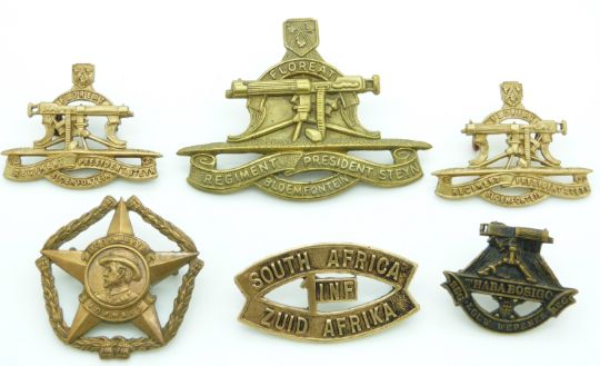 Six South Africa Botha Regiment, President Steyn Regiment etc metal badges