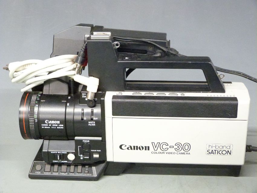 Canon VC-30 colour video camera with AF zoom 10-80mm 1:1.4 macro lens with extra bag containing a portable video recorder etc
