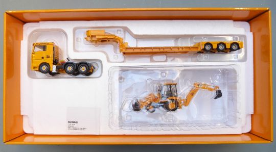 Corgi JCB 1:50 scale limited edition diecast model Man TGA Nooteboom Low Loader With JCB Backhoe Loader 3CX, CC13425, in original box with slip cover.